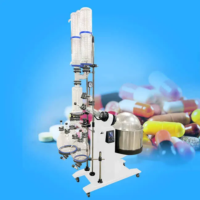 로터리 증발 기는 제약, 화학, 바이오 제약 산업 농도, 결정 화, 건조, 분리 및 석탄 복구의 해산에 대 한 주로 사용 된다. 원리: 진공 상태, 난방, 병 상수 회전, 회전을 일정 온도에서 큰 영역의 측 벽 형성 재료 박막, 높은 증발. 높은 유리 콘덴서 증기 냉각, 컬렉션 병에서 회복 하 여 가용 화는 크게 증발, 특히 높은 온도에 사용 하기 쉬운의 효율성 향상의 생물 학적 제품의 분해 집중 되었고 정화.